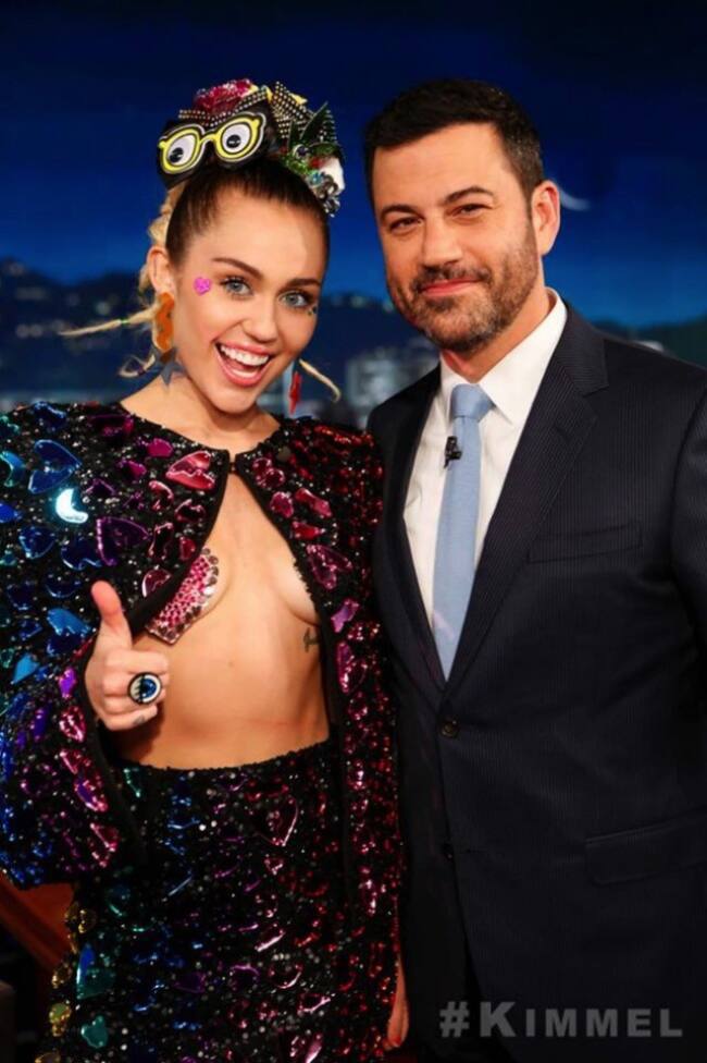 Sabemos que un toples de Miley Cyrus en su Instagram, no es novedad, pero verla con sus pechos al aire en el aclamado show de Jimmy Kimmil causa realmente curiosidad.