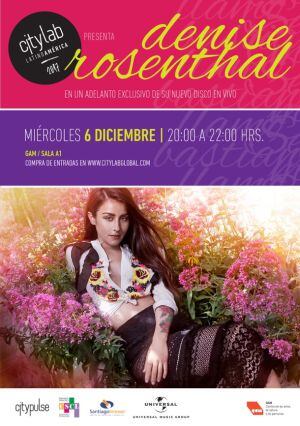 El nuevo disco de Denise Rosenthal ya se encuentra disponible en todas las plataformas digitales y será pre-lanzado hoy en alianza con CityLab en la Sala A1 del Centro Cultural GAM a las 20:00 hrs. El show se realizará en un formato que mezclará tanto un conversatorio con todos los participantes de la creación de este disco y un show con banda completa.
