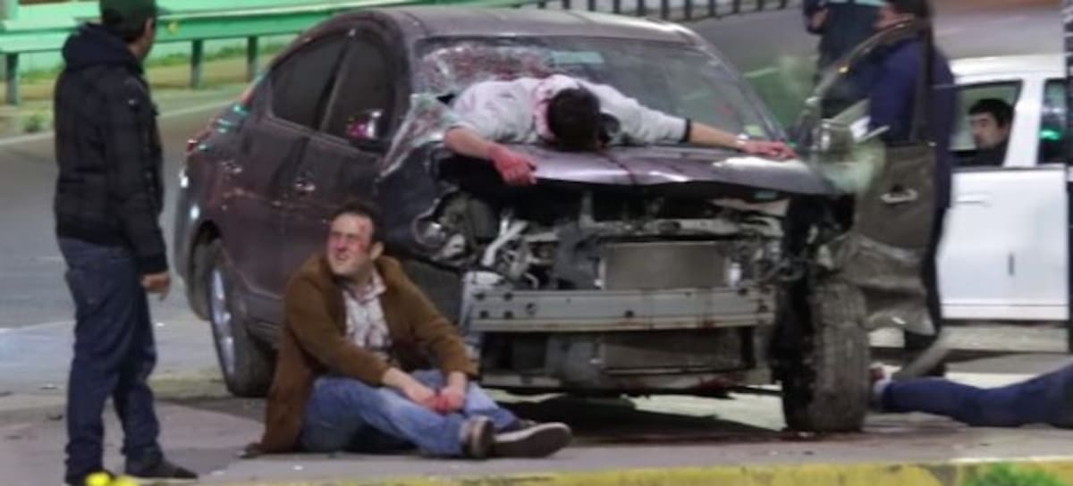 En medio de las festividades, el youtuber chileno Roberto Apud, conocido en redes sociales por sus experimentos sociales, se atrevió a intervenir la calle con un accidente de tránsito simulado, en donde interpreta a un conductor borracho que acaba de atropellar a una persona y matar a su propio copiloto.