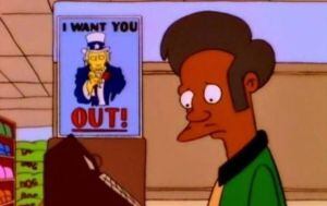 Estamos hablando de Apu Nahasapeemapetilon, el hindú propietario del Kwik-E-Mart, quien estaría causando molestias debido a temas raciales entre algunas etnias.