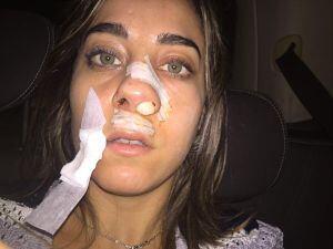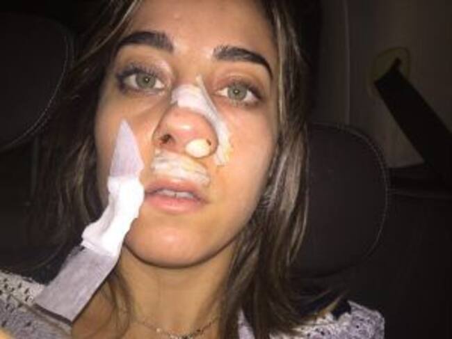 The Sun publicó unas imágenes de las heridas con que terminó Saulino, llevándose la peor parte su nariz, boca y mejillas.