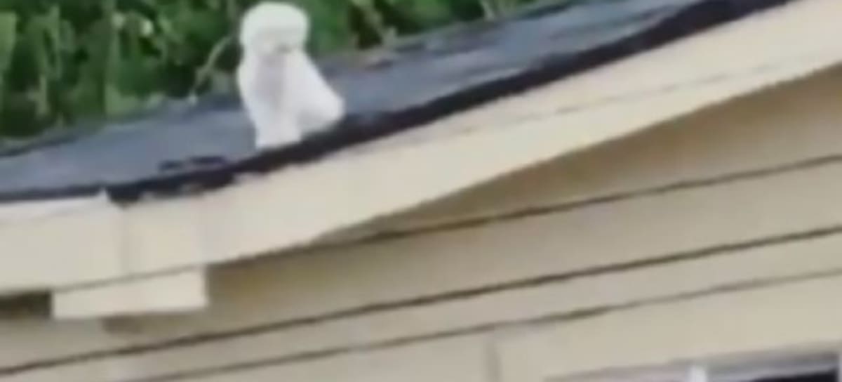 Mujer no para de reír al ver al perro de su vecina en el techo