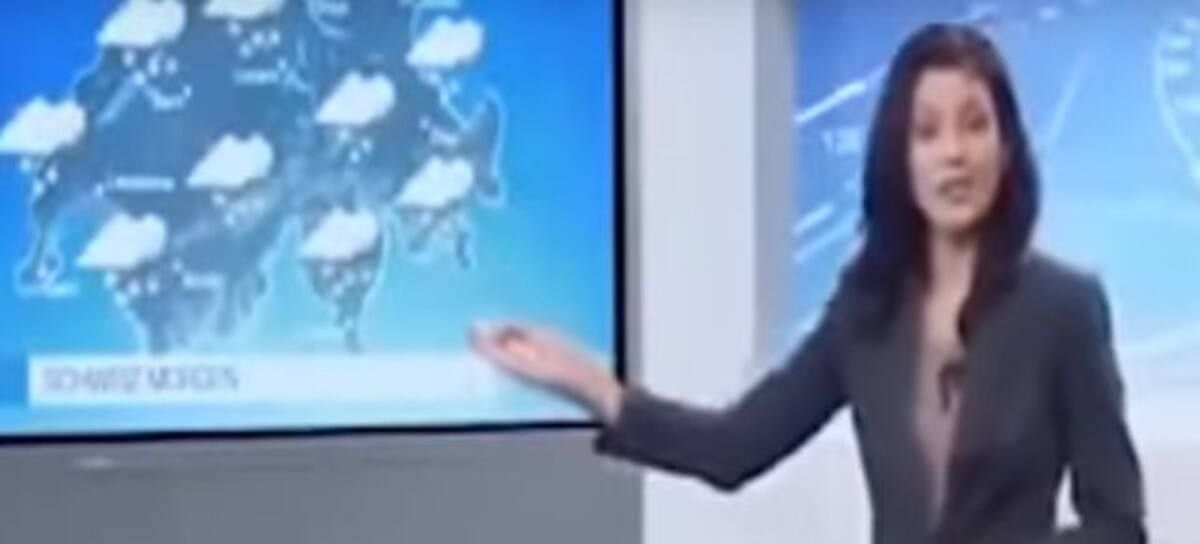 ¡Trágame tierra! Eso debió pensar esta presentadora del tiempo que sufrió un accidente en vivo mientras hacía su trabajo en un canal suizo.