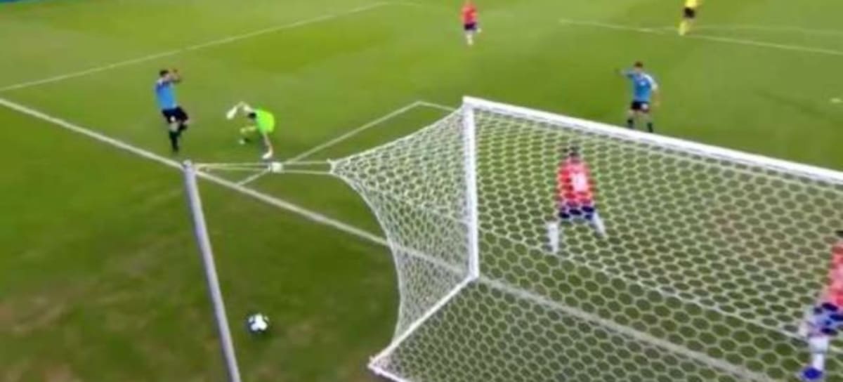 Resulta que en un mano a mano, el delantero charrúa remató frente al portero nacional, Gabriel Arias, quien salvó el arco chileno atajando la pelota con los guantes.