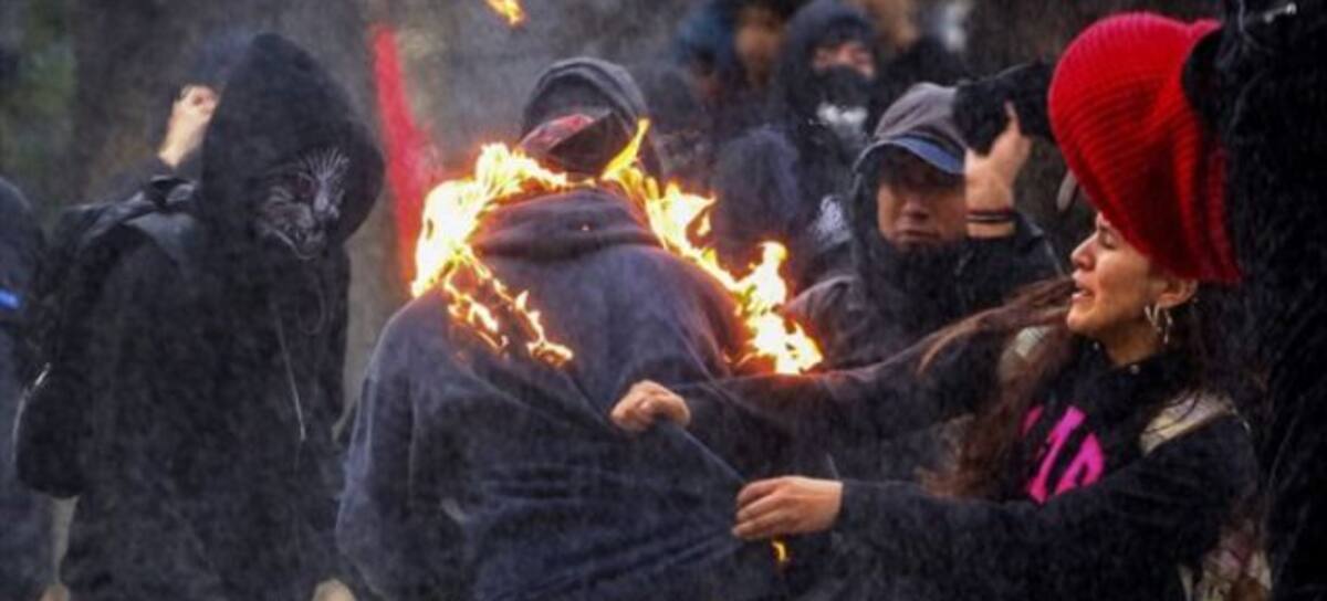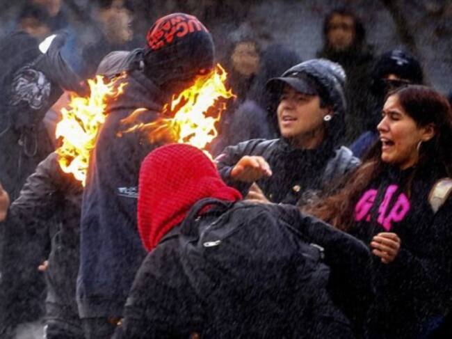 Encapuchados terminaron quemados tras lanzar bombas molotov en la marcha
