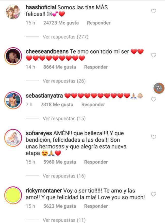 Ricardo Montaner también se hizo presente y escribió: “Voy a ser tío!!! Te amo y las amo!!! Y que felicidad la mía! Love you so much”.
