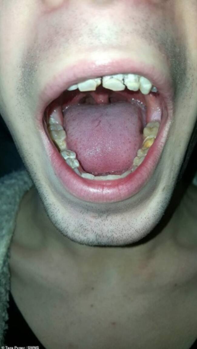 Un joven ingles de 21 años de nombre Vinnie Pyner, originario de Margate, Inglaterra asegura que su adicción a las bebidas energéticas “Monster Energy” le destruyó por completo su dentadura, tras relatar que consumía hasta seis latas diarias durante seis meses, de acuerdo a lo que informó el portal Kent Online.