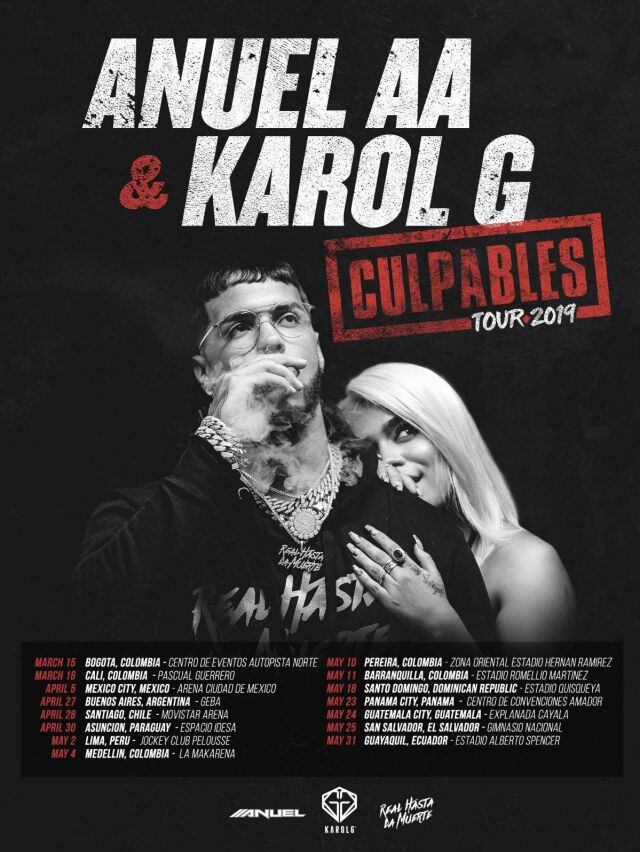 La pareja reggaetonera compuesta por Karol G Y Anuel AA, anunciaron un Show en Chile como parte de su gira latinoamericana denominada «Culpables Tour 2019»