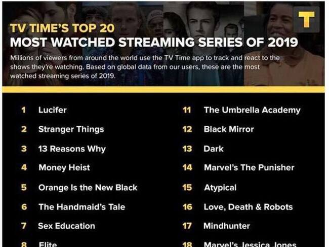 Fue TV Time quien se encargó de dar a conocer el top 20 de series más vistas a nivel mundial. Netflix comandó la lista con 19 producciones, en la que solamente «The Handmaid’s Tale» (El Cuento de la Criada) interrumpe en el puesto 6 ya que está disponible a través de la plataforma Hulu.