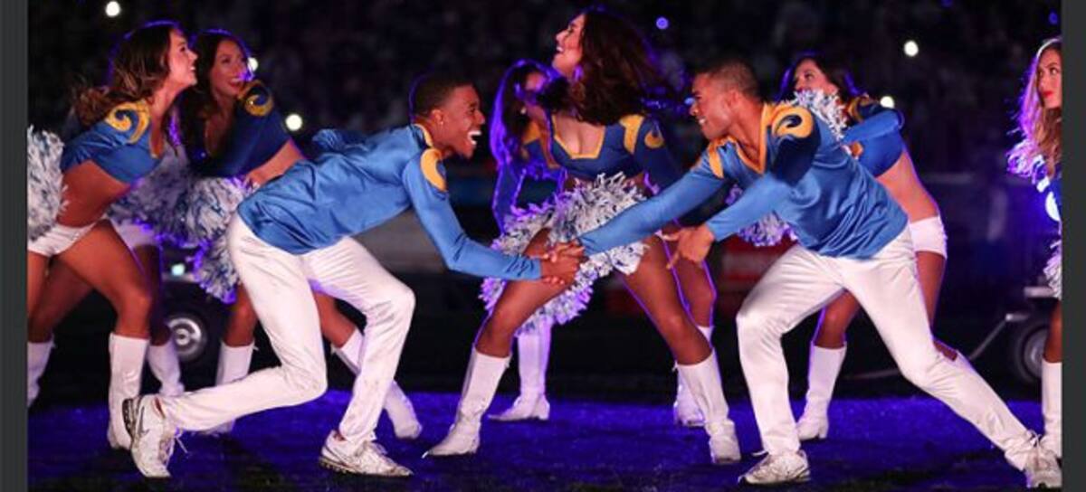 Quinton Peron y Napoleon Jinnies serán parte, por primera vez en la historia, del campeonato de la NFL y del equipo de porristas de Los Angeles Rams quienes se enfrentarán a New England Patriots el próximo domingo en Atlanta.