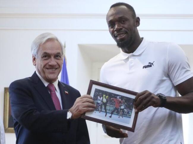 El mandatario le enseñó al destacado atleta jamaiquino un cuadro con un meme impreso en él, donde aparece la imagen de Piñera cuando estuvo a punto de caerse en medio de su primer periodo presidencial. En ella, también asoma Usain Bolt como si fuese una carrera.