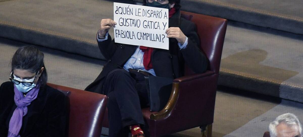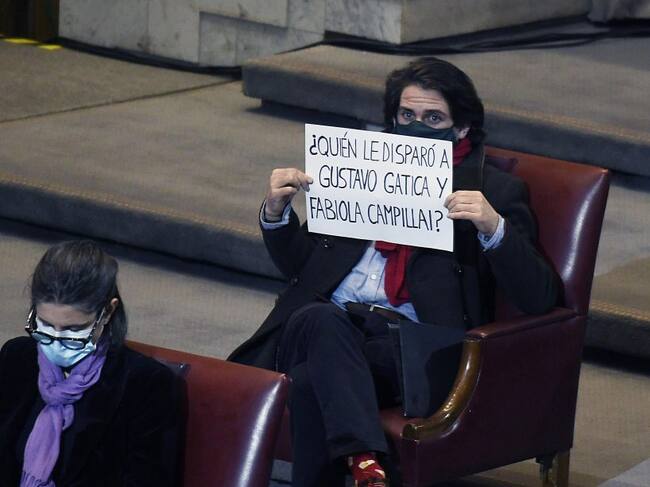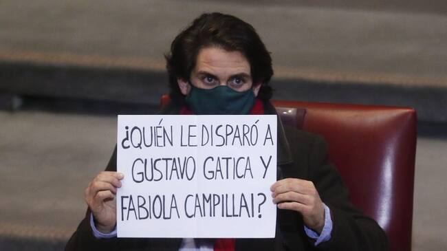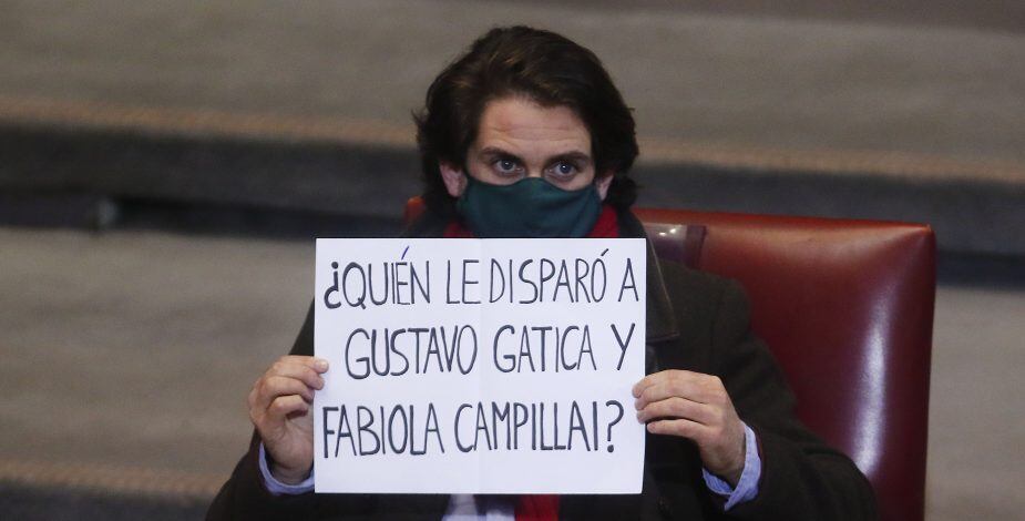 Esto porque el político mostró un papel que decía “¿Quién le disparó a Gustavo Gatica y Fabiola Campillai?”, en relación a las dos víctimas de pérdida total de su vista durante el estallido.