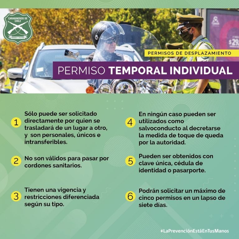 -Ten ojo porque hasta el domingo 17 de mayo, un mismo RUT puede obtener un máximo de 7 permisos temporales a la semana. Desde el lunes 18, la cifra baja a 5 con tal de limitar las salidas. Por lo tanto, SAL SÓLO LO NECESARIO, recuerda que la cuarentena total es para cuidarnos.