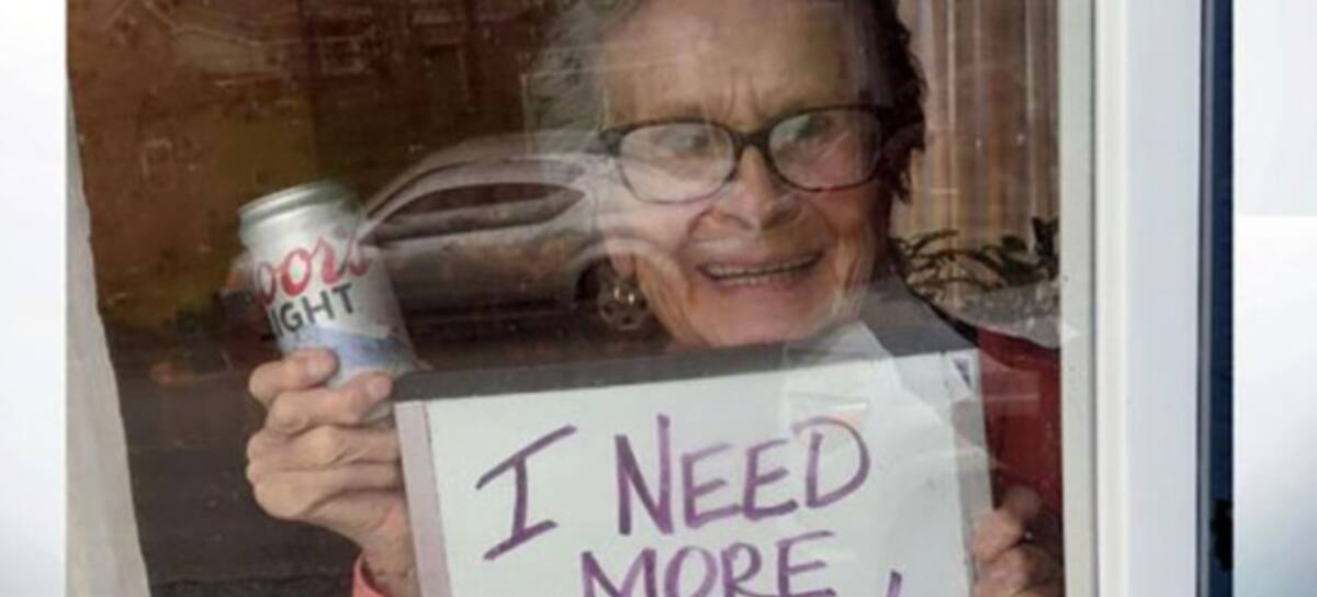 Ante el devastador escenario que se está viviendo en hospitales y morgues de todo el mundo, siempre es bueno mantener el espíritu y ánimo arriba. Es lo que ha conseguido la fotografía de una anciana que pide “más cerveza” para sobrellevar el confinamiento.