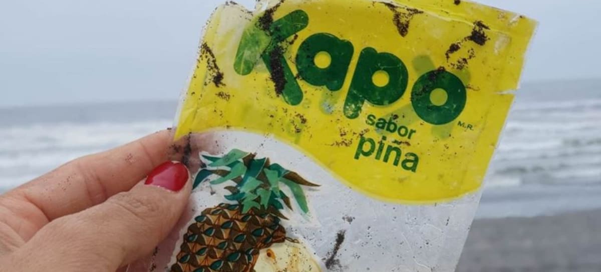 La entrenadora y asesora de alimentación Berni Allen publicó en sus redes un envase del jugo “Kapo” que encontró en las playas de Santo Domingo, asegurando que estuvo mucho tiempo en el mar ya que al ser de material plástico se demora más tiempo en degradarse.