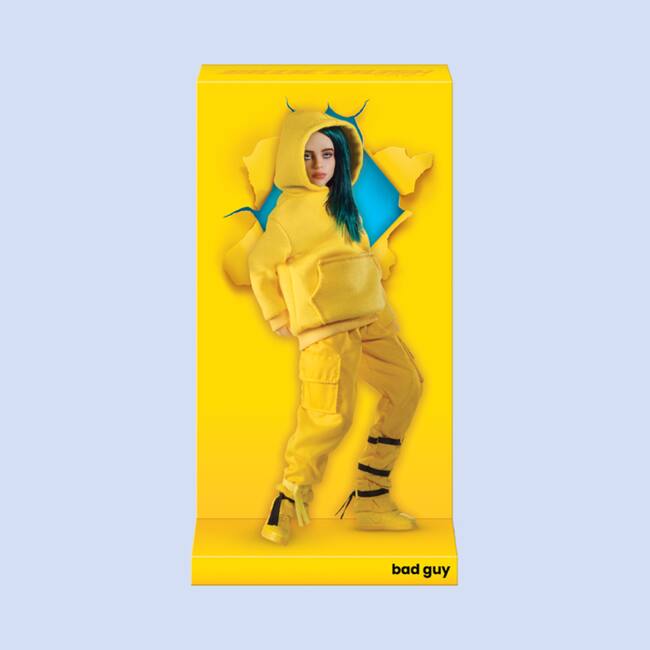 La figura de “Bad Guy” representa a la joven con su polerón amarillo, y viene en una caja que se transforma en un escenario inspirado en el MV.