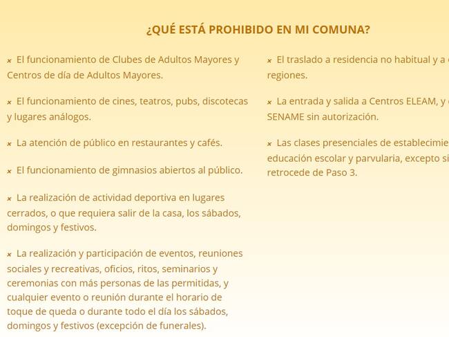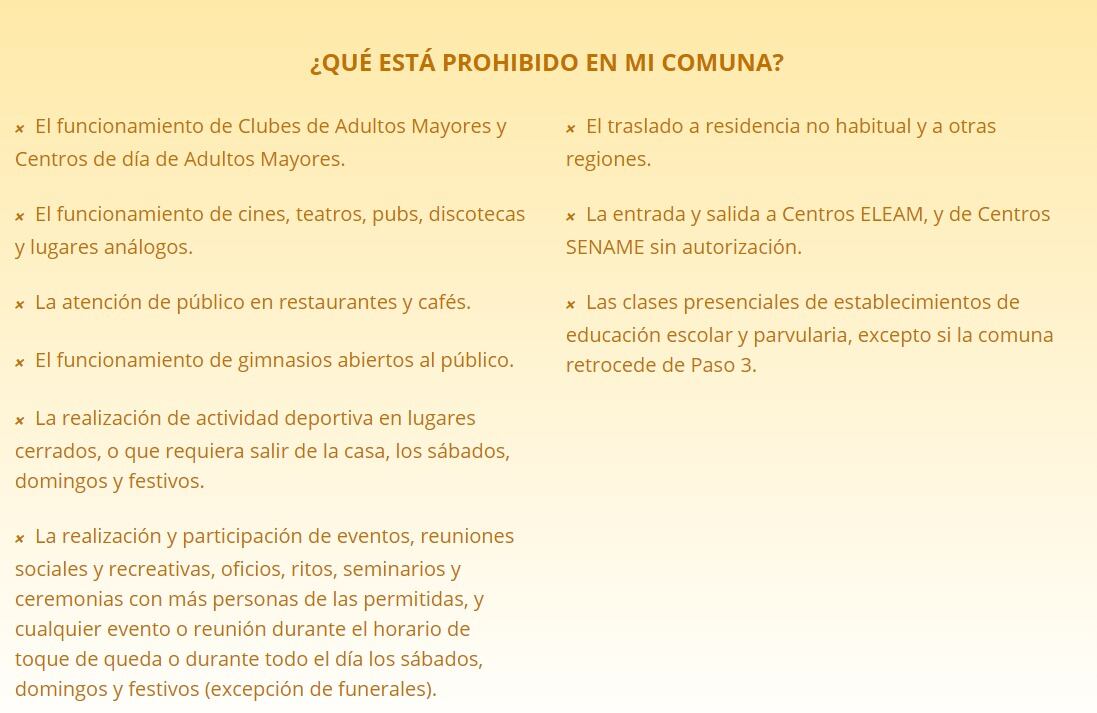 Según la información entregada por el mismo Ministerio de Salud, en la Fase 2 tendremos las siguientes prohibiciones: