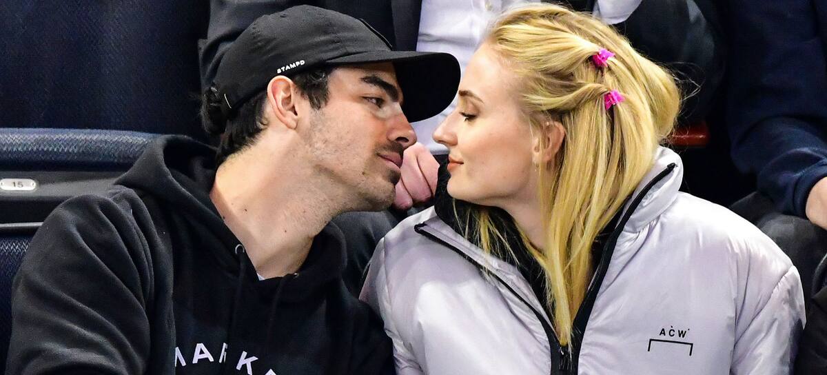 Mandatory Credit: Photo by JD Images/REX/Shutterstock (10160890ch) Joe Jonas and Sophie Turner Celebrities at Detroit Red Wings v New York Rangers, NHL ice hockey match, New York, USA - 19 Mar 2019 At one point Sophie impressed by the crowd by quickly drinking (and spilling) a glass of wine while being put on the Jumbotron / JD Images/REX/Shutterstock