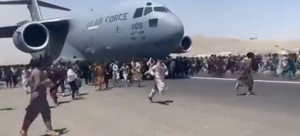 Prueba de esto son los registros que muestran a un centenar de ciudadanos que, en su intento por huir de la ciudad tomada, incluso han intentado abordar peligrosamente aviones en movimiento.