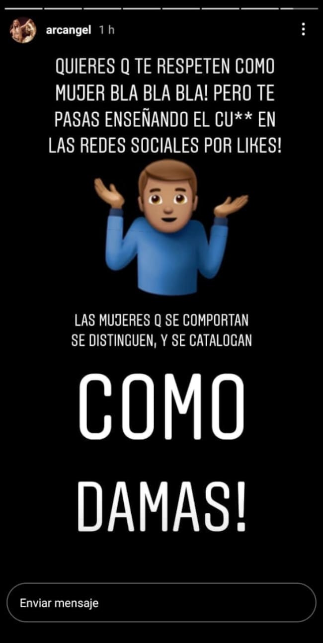 Ahora la “Maravilla” subió una story a su Instagram que tenía un fondo negro y una frase que intenta explicar lo ocurrido. “La clave para que una sociedad conviva en armonía es el respeto a la opinión ajena. No tenemos que estar de acuerdo en nuestras preferencias sexuales, políticas o culturales para llevarnos bien”, comentó firmando como Austin. A. Santos, su verdadero nombre.