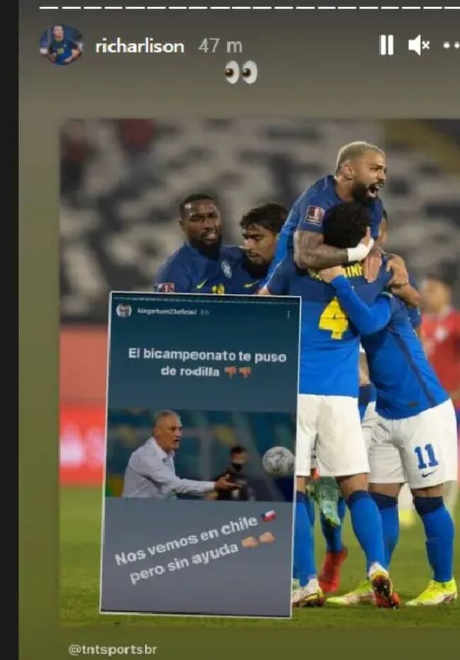 Esto mismo fue puesto por Richarlison en sus stories, pero con el emoji de los ojitos mirando hacia un costado, en claro sarcasmo por no haber logrado lo que prometió.