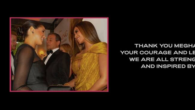 La megaestrella pop se enteró de lo que vivió la duquesa de Sussex y no dudó en dedicarle unas palabras. A través de su sitio web, Beyoncé publicó una imagen de agradecimiento para la actriz.