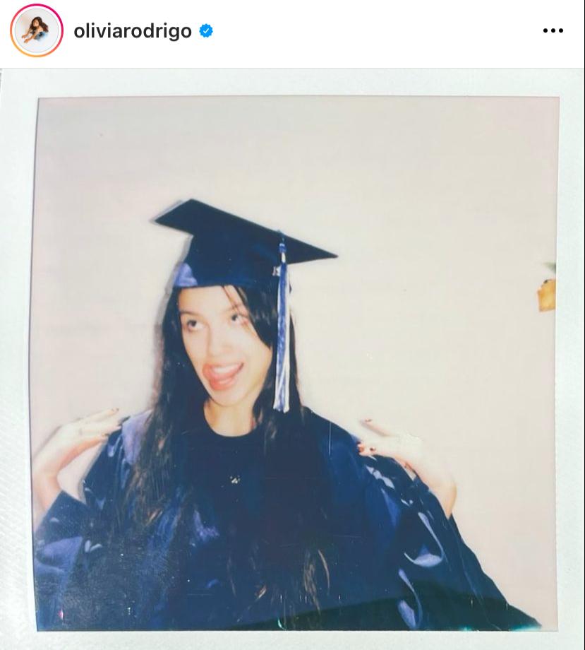 La cantante de 18 años que ha causado sensación con su disco debut "Sour" se despidió de la secundaria y no dudo en mostrar el especial momento.