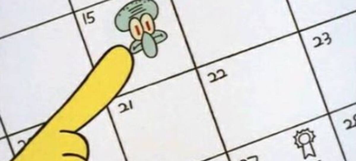 Hay que recordar que antes de esas escenas, Esponja le insiste mucho a Calamardo para que lo escuche, y justo ahí le muestra el calendario donde muestra que hoy es el día para molestarlo.