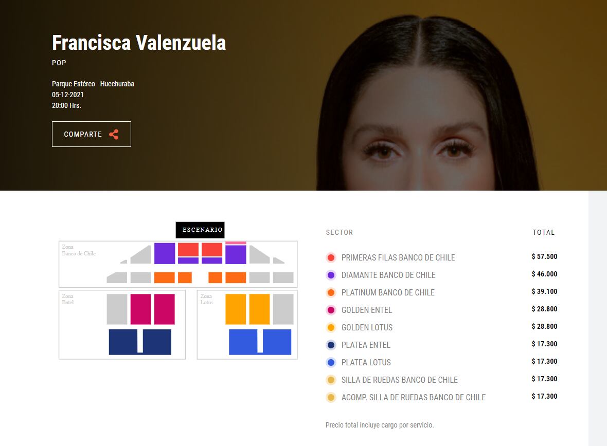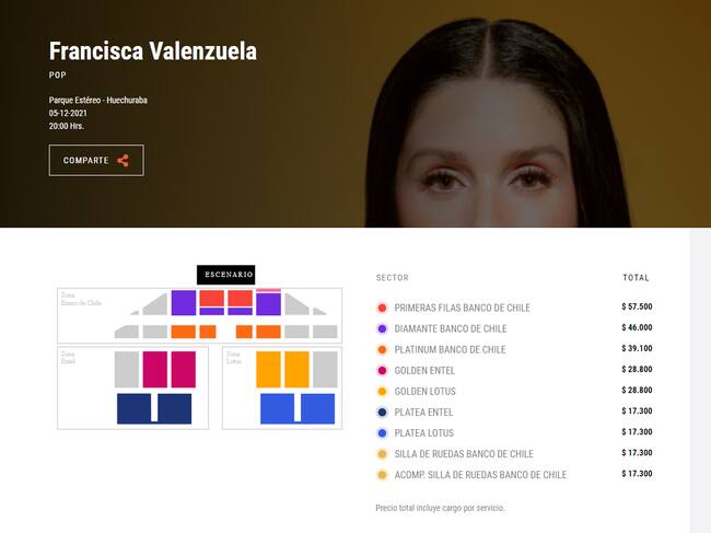 Las entradas para Francisca Valenzuela en Parque Estéreo ya están disponibles a través del sistema Punto Ticket con valores que van desde los $17.300 hasta los $57.500.