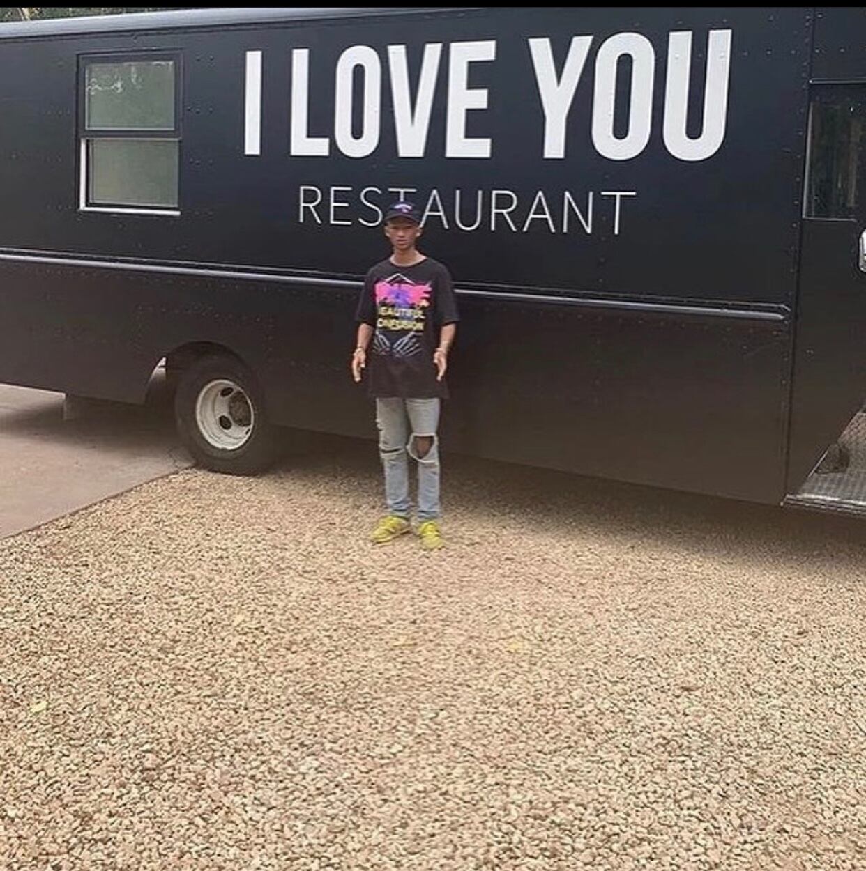 «I Love You Restaurant» es el nombre de la cuenta de Instagram en donde el hijo del Will Smith publica los productos, la acción que realiza y las personas que reciben su comida. En la plataforma se puede apreciar la labor que el joven desempeña en las zonas de Skid Row de Los Ángeles y en la ciudad de Nueva York, en Estados Unidos.