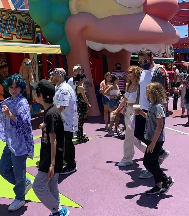 Jennifer Lopez y Ben Affleck fueron vistos regaloneando junto a sus hijos en parque Universal
