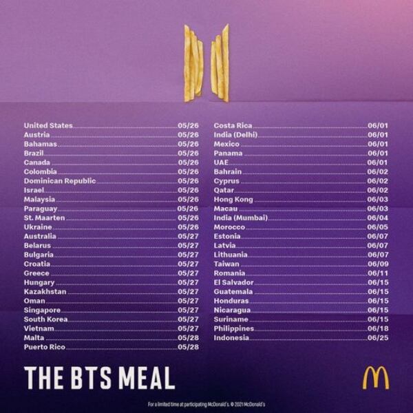 El frenesí se ha apoderado del ARMY luego de que saliera el combo creado por BTS para McDonald’s. Lanzado oficialmente el 26 de mayo, rápidamente la cadena ha seguido incluyendo el menú en sucursales de diferentes partes del mundo.