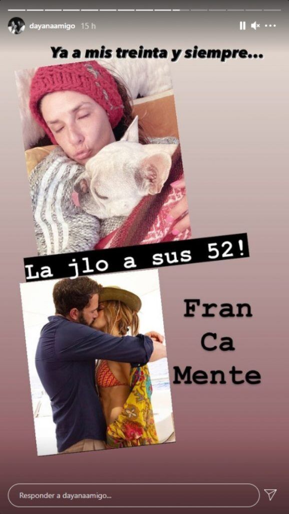 Entre quienes reaccionaron estuvo la actriz nacional Dayana Amigo, quien con su característico humor recurrió a redes sociales para hacer una comparación de ella misma con J.Lo.