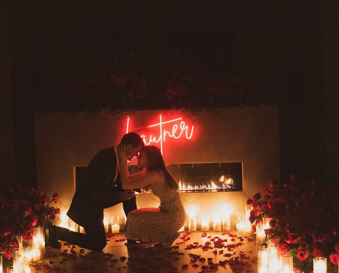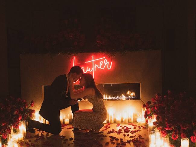 Taylor Lautner preparó el lugar con velas y pétalos de rosa que adornaban el suelo, mientras que en la pared se puede ver su apellido con unas letras de neón. Rodeado de este hermoso escenario se posicionó para pedirle que fuese su esposa.