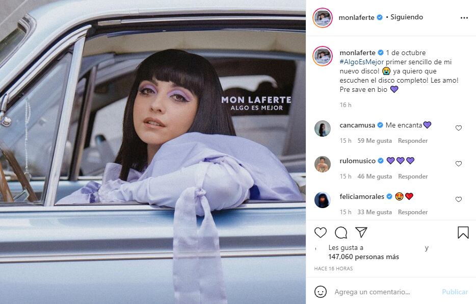 Por medio de su perfil oficial de Instagram, Mon Laferte compartió la información respecto a este nuevo single del que aún no se sabe mucho.