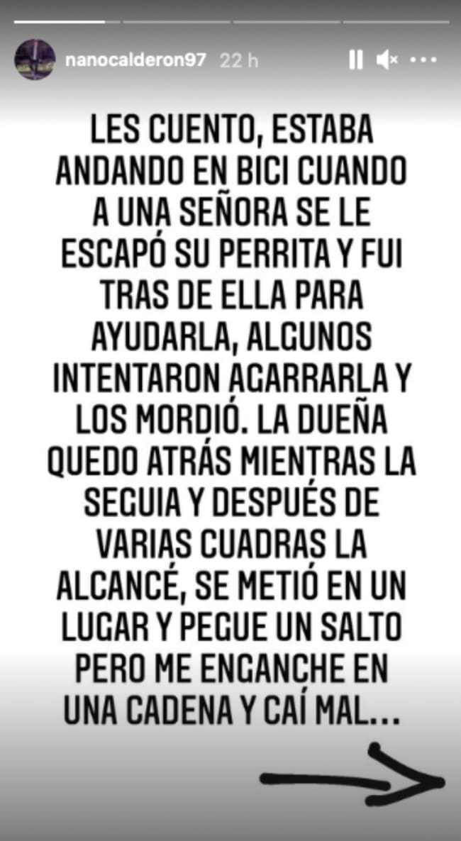 Nano Calderón sufrió grave lesión: Estaba ayudando a un perrito
