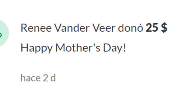 Hasta la fecha, las personas han donado más de 20 mil dólares.