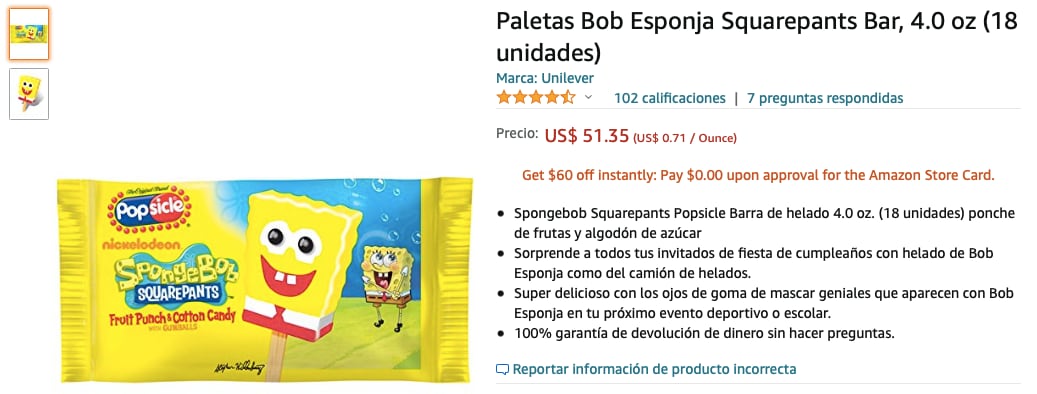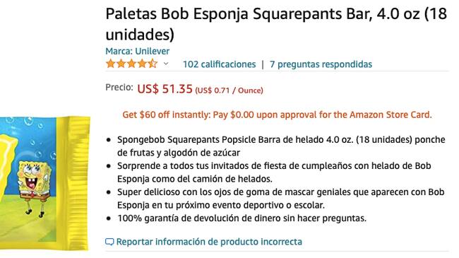 Noah, a quien le encantan las paletas de helado de Bob Esponja, entró a Amazon y aprovechando que la tarjeta de su mamá estaba registrada en la aplicación, compró 51 cajas de estas paletas.