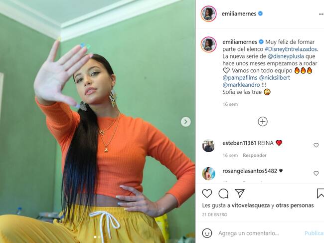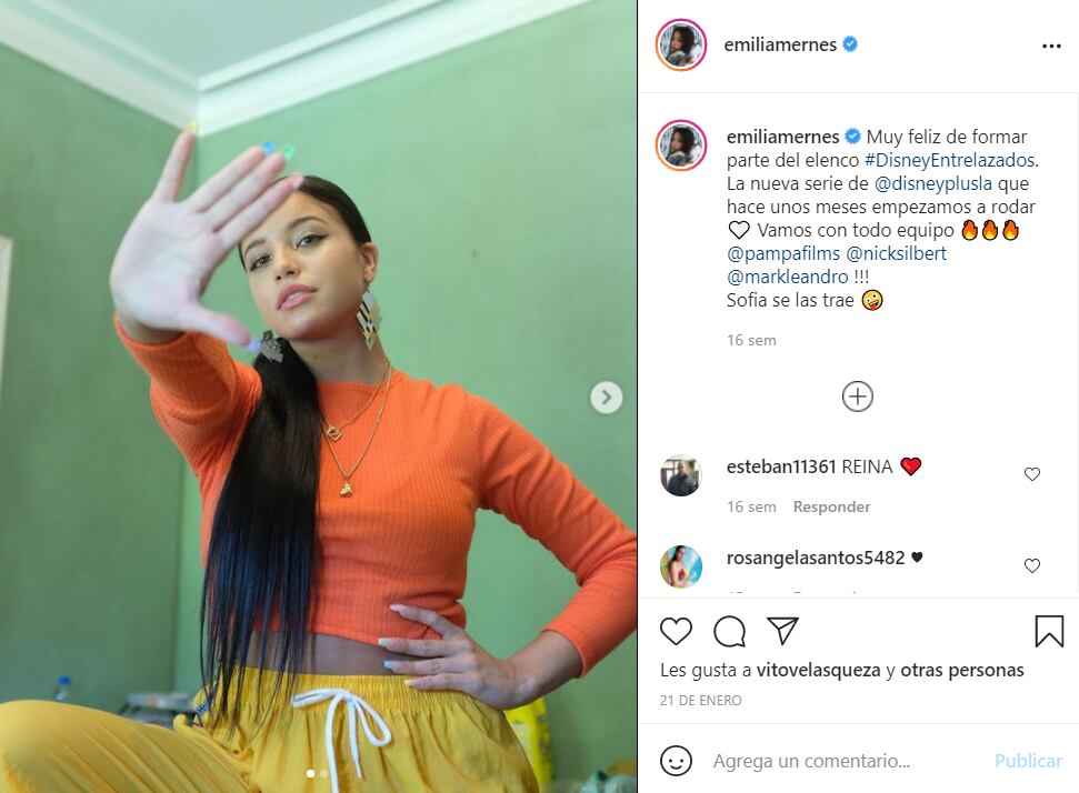 Emilia debutará como actriz en la próxima serie de Disney+, Entrelazados, donde interpretará el papel de Sofía.