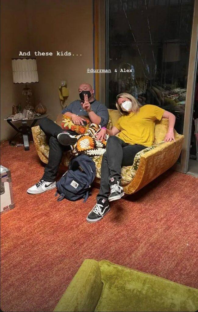 Luego también subió una foto de Danny Durr en el set de grabación, quien es técnico de luces de la serie. El hombre aparece sentado en un sillón junto a Alex, esto acompañado de «También a estos chicos».