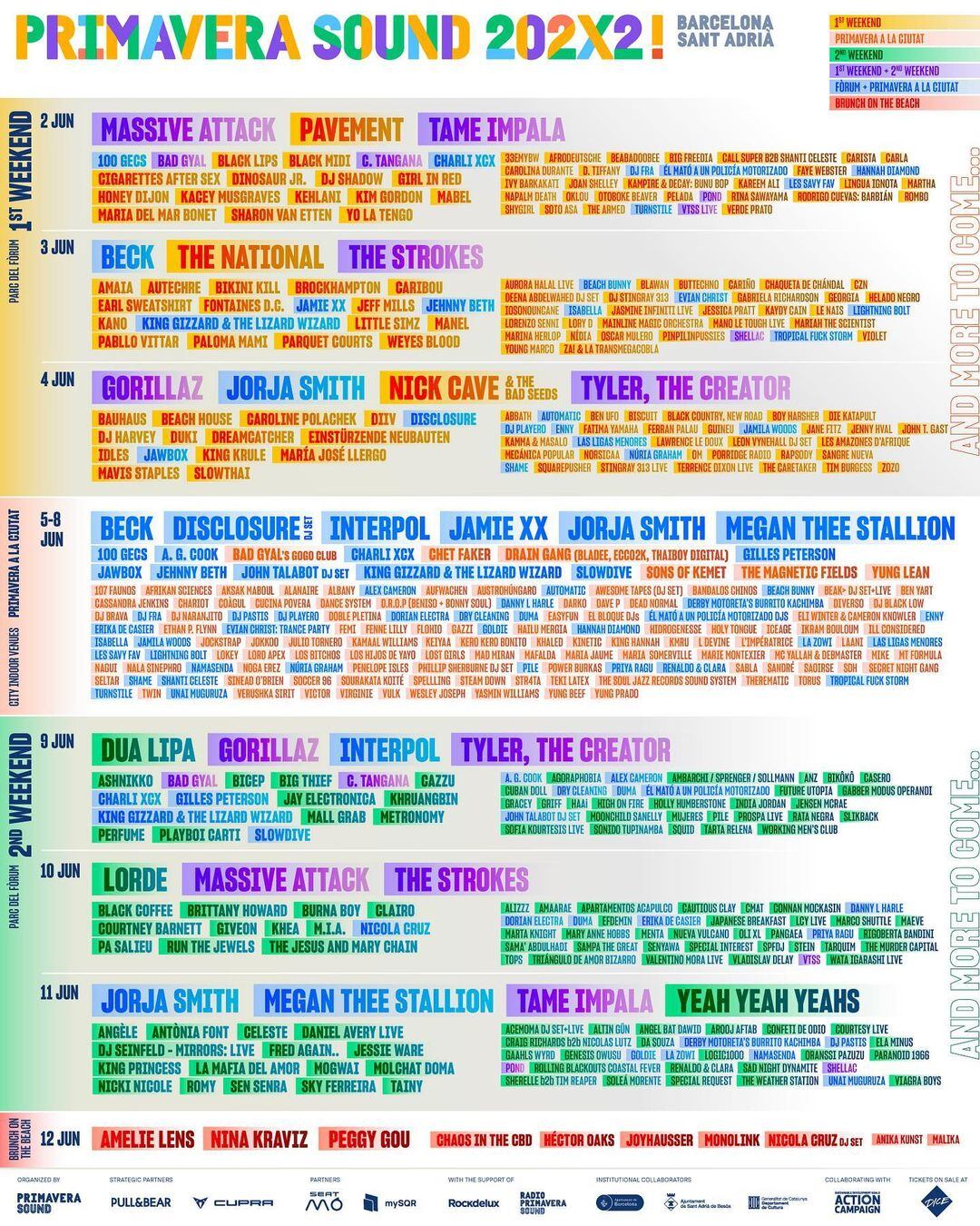 Desde el 2 al 12 de junio del 2022, en Barcelona, se realizará el Primavera Sound que contará también con Bad Gyal, Lorde, Megan Thee Stallion, The Strokes, Cazzu, entre otros