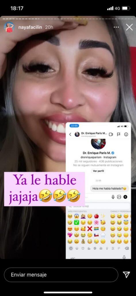 Finalmente Naya motivada por sus seguidores se armó de valor y le mandó un mensaje a Paris, preguntándole qué es lo que le había dicho.