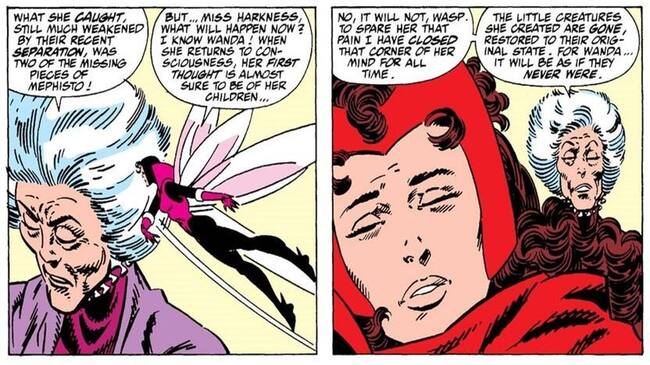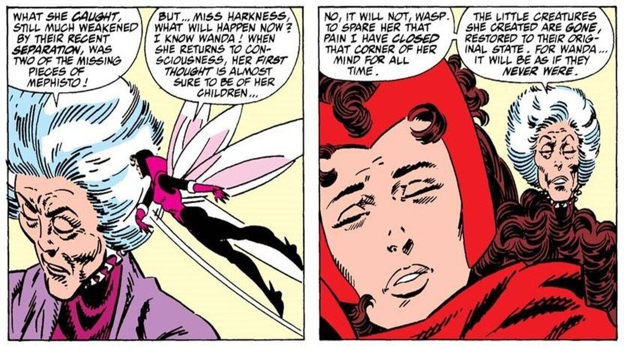 La bruja le enseñó a Wanda a manejar sus poderes y la instruyó en el camino de la magia, pero siempre la tuvo bajo su control. Incluso, Agatha llegó a borrarle la memoria a Wanda, lo que años después terminó en una paliza para Los Vengadores en otra de las historias de Marvel.