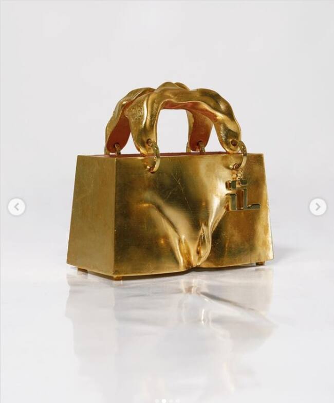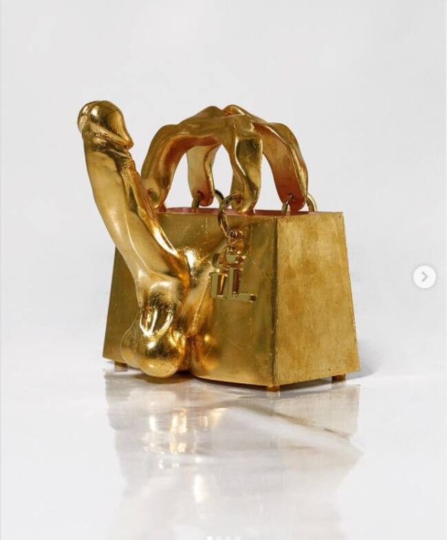 Su bolso es color dorado y tiene la particularidad de contar con un miembro masculino en los costados. ¡Hasta Mia Khalifa le comentó la foto!