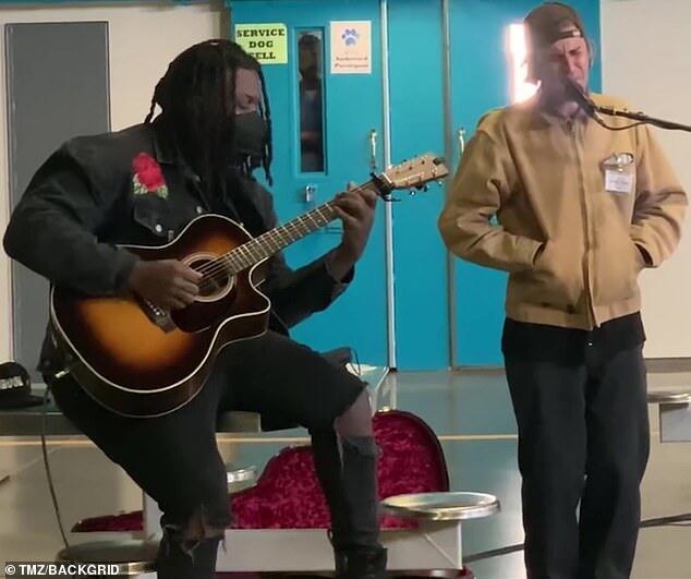 El cantante aprovechó de llevar un mensaje de fé y música a los presos, cantando "Lonely" uno de los temas de su más reciente disco.