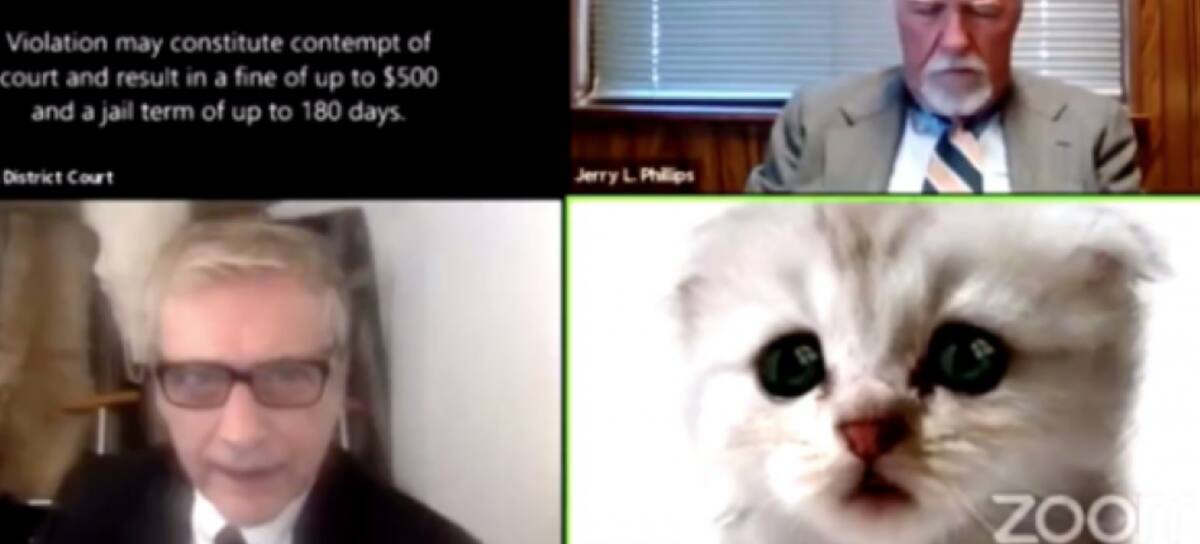 Ron Porton, el abogado en cuestión, tenía activado desde el principio un filtro que no dejaba ver su rostro. En su reemplazo, aparecía un gatito blanco que moldeaba y sincronizaba su cara al igual que la persona tras la cámara. Vale decir, si quien habla está con una sonrisa o mirando hacia un lado, el animalito hará lo mismo.