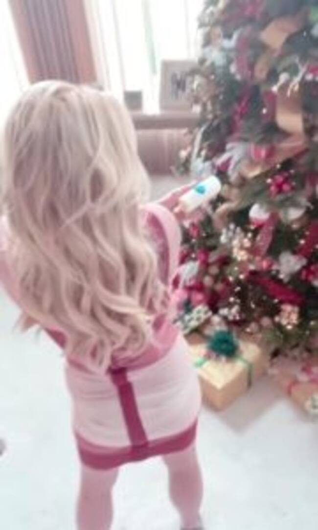 Pero no ella no ha confirmado, ya que solo podemos ver las espaldas de la artista que se encuentra al lado de un enorme árbol de navidad.