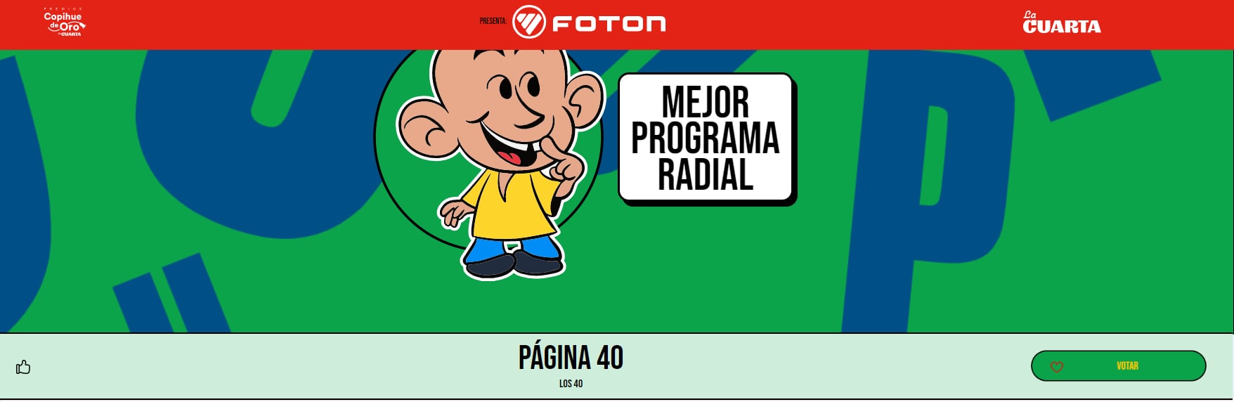 Cuando estés en eso, llegarás a la sección de “Mejor Programa Radial” donde aparecerá “Página 40” de LOS40.