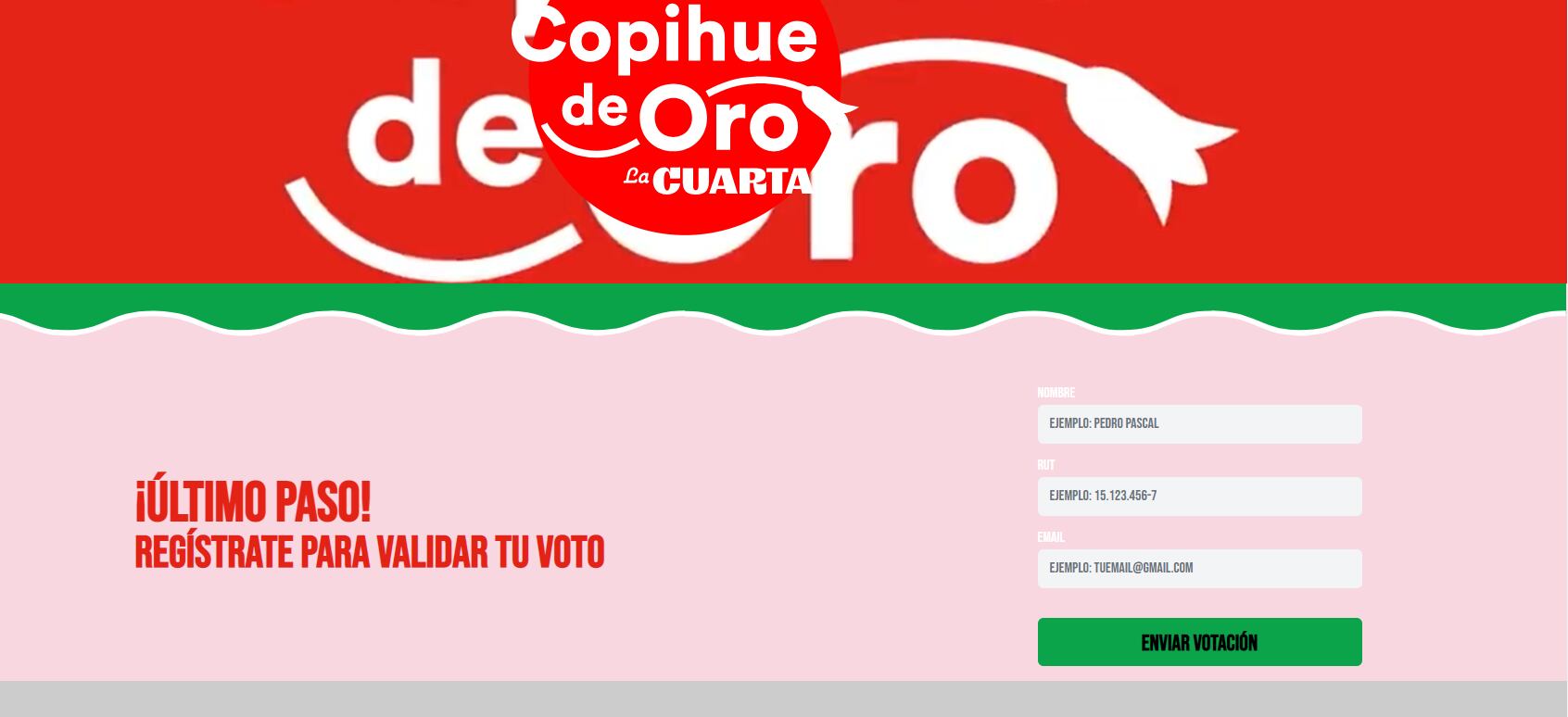 Una vez votado por todos tus favoritos, solamente tendrás que completar la acción con tu nombre y correo electrónico… ¡y listo!