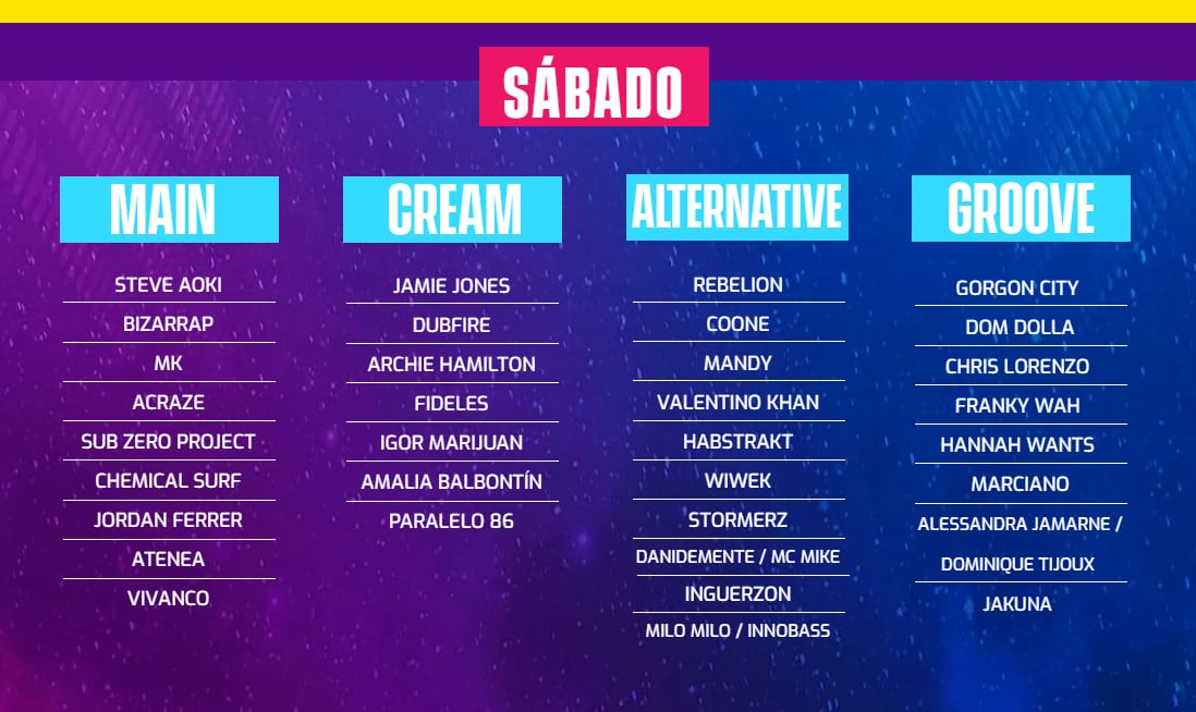 En el principal, tendremos a Steve Aoki y Bizarrap, dos nombres más que potentes de la jornada de los que te hablamos en este especial de artistas imperdibles.